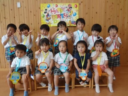 遊戯室に集まったお友だちと一緒に、またひとつ大きくなったことをお祝いしました☆