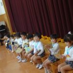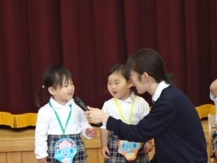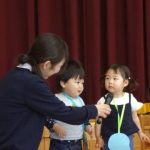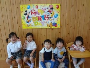 誕生会🎁 GWも明け、子どもたちは元気に登園してきてくれています。 今日は5月生まれのお誕生会が行われました。 遊戯室に集まったお友だちの前に並んだ誕生児さんたちは、 少し緊張した様子も見せていましたが、 マイクを向けられると、好きな歌を歌ったり、質問に答えたりしてくれました。 誕生カードやメダル、お友だちからの歌のプレゼントも貰って、 とても楽しい誕生会となったようです♪ 5月生まれのお誕生児さん。 お誕生日おめでとうございます! これからも元気に大きくなってください☆