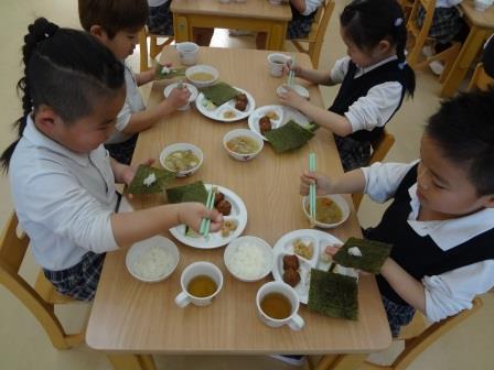 幼児組は自分たちで「手巻き寿司」を作って美味しくいただきました♪