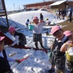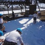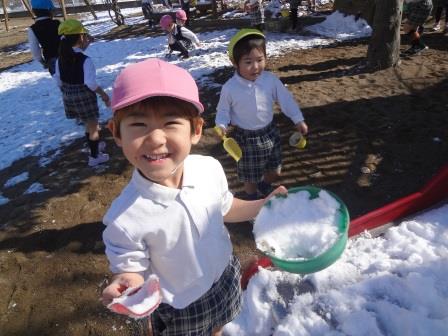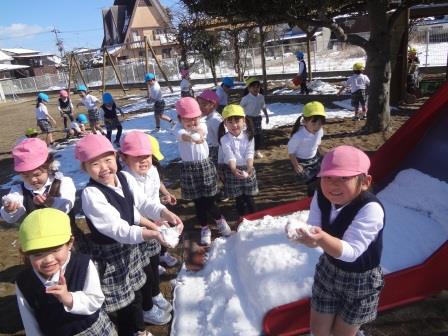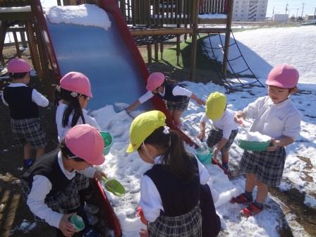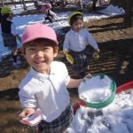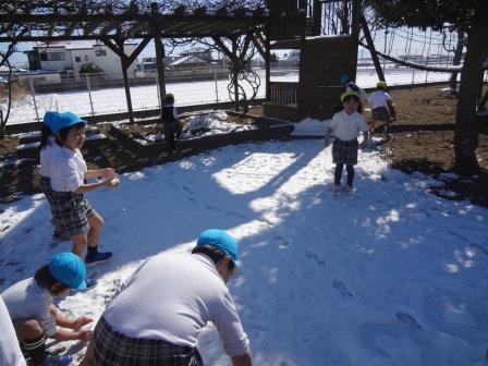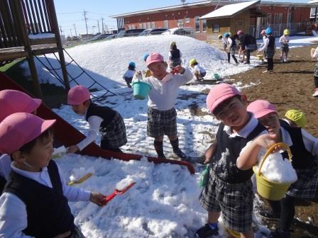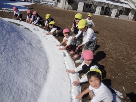 雪が園庭に積もり、解けずに残っていました。