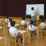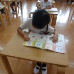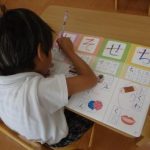 はじめに、ワークを使ったひらがな学習の様子を見ていただきました。