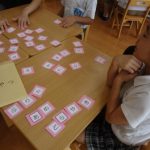 ひらがなカードを組み合わせながら、ことばを作るゲームを楽しみました。